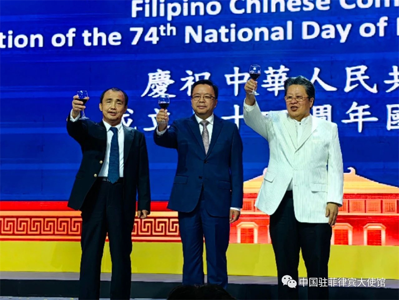 中国驻菲律宾大使黄溪连出席并致辞,他回顾了新中国成立74年来所取得的辉煌成就,赞扬了中菲两国源远流长的友谊,同时,他充分肯定了旅菲侨胞为居住国以及祖籍国经济建设、社会发展做出的积极努力。