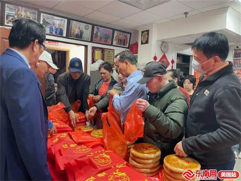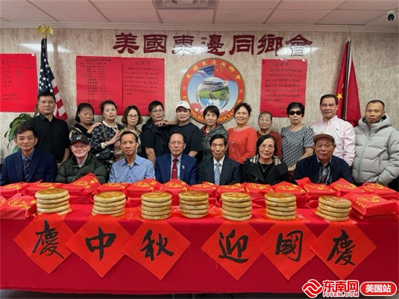 东南网美国9月28日讯(特约记者 纽约墨人)当地时间9月26日,美国福建东边同乡会在纽约举行“庆中秋 迎国庆”活动,大家欢聚一堂,共叙乡情,畅谈祖(籍)国建设的伟大成就,现场还免费向乡亲们派送了300份月饼。