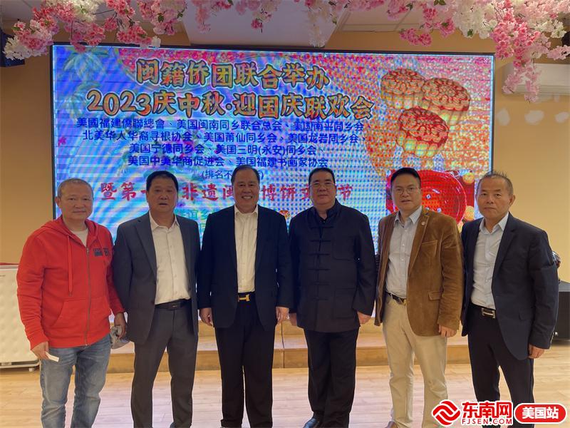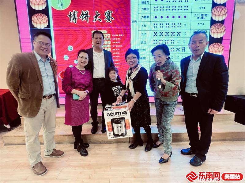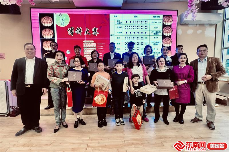 东南网美国10月2日讯(特约记者 白水)当地时间9月30日,为庆祝一年一度中秋佳节,共享闽南非遗博饼文化,美国福建侨联总会、美国闽南同乡联合总会、北美华人华裔寻根协会、美国南平同乡会、美国莆仙同乡会、美国美中华商促进总会、美国龙岩同乡会、美国宁德同乡会、美国三明(永安)同乡会、美国福建书画家协会十家闽籍侨团以及东南网美国站联合举办“庆中秋迎国庆暨第十届非遗闽南博饼文化节”联欢活动。