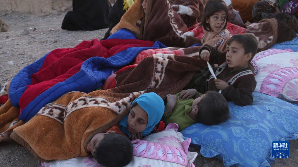 10月7日,在阿富汗赫拉特省,受灾民众躺在地上休息。新华社发(马沙勒摄)