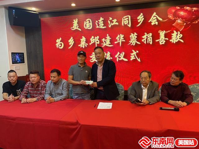 美国连江同乡会主席张云表示,同乡会得知邱建华患病消息后,立刻为患者发起募捐,在短短两周内筹集资金48150美元(约合人民币35万元),希望可以解决病者的燃眉之急。所有捐款主要由美国连江同乡会同仁,连江县敖江镇幕浦村乡亲们,还有社会各界善心人士捐赠。张云表示,邱建华先生虽然身在异国他乡,但是他的困难处境得到了乡亲们的大力帮助。当天,邱建华堂弟邱建清代其接收捐款全额,并代表邱建华及家属感谢美国连江同乡会及其乡亲们的热心捐款。