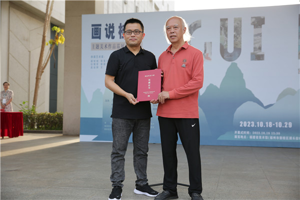 广西漓江画派促进会顾问、广西师范大学美术学院教授肖舜之(右)与福建省美术馆馆长邱志军(左)合影