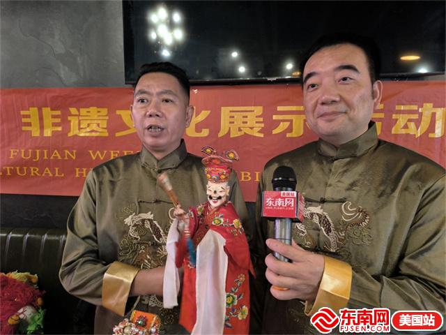 来自漳州市布袋木偶传承保护中心的非遗传承人陈黎晖、姚文坚接受东南网采访