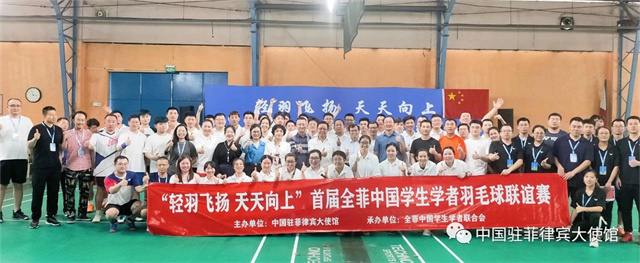 10月26日至27日,由中国驻菲律宾大使馆主办、全菲中国学生学者联合会承办的“轻羽飞扬 天天向上”——首届全菲中国学生学者羽毛球联谊赛在菲律宾马尼拉举行。中国驻菲律宾大使黄溪连出席开幕式并致辞。中国驻菲律宾使馆教育参赞熊胜,全菲中国学生学者联合会代表及运动员、裁判员、羽毛球爱好者等百余人参加活动。