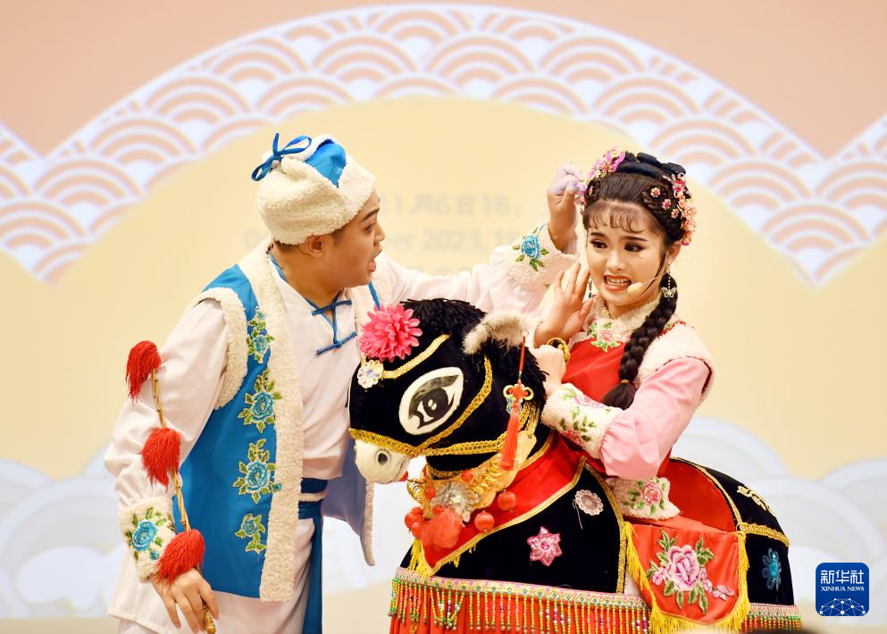 11月6日,演员在柏林第八届德国“中国曲艺周”闭幕演出中表演二人转。