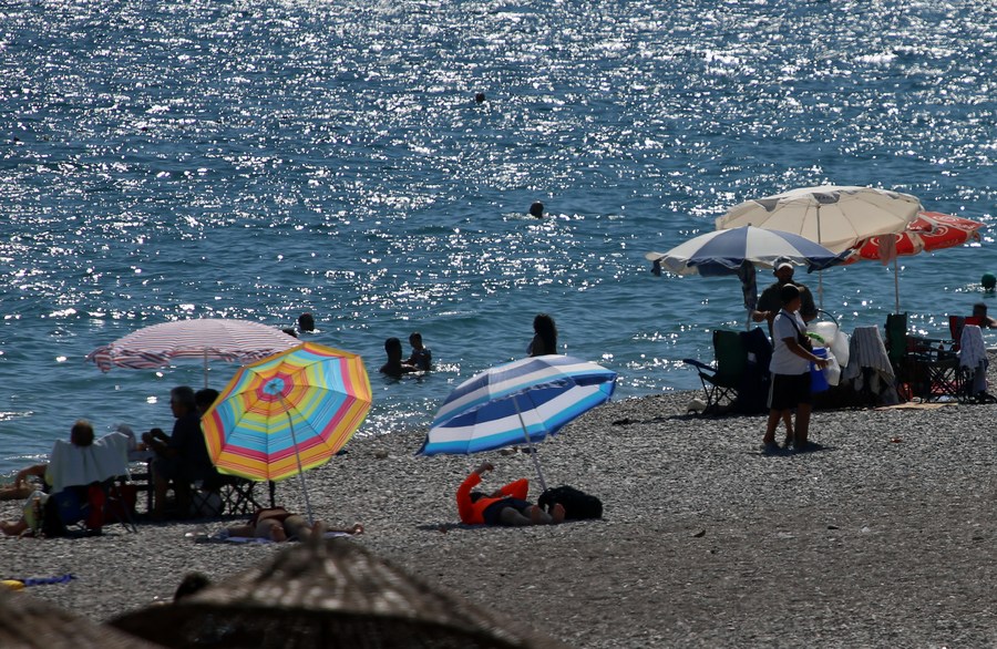 Tourists enjoy leisure time at the beach in Antalya, Türkiye, Nov. 7, 2023.(Photo by Mustafa Kaya/Xinhua)