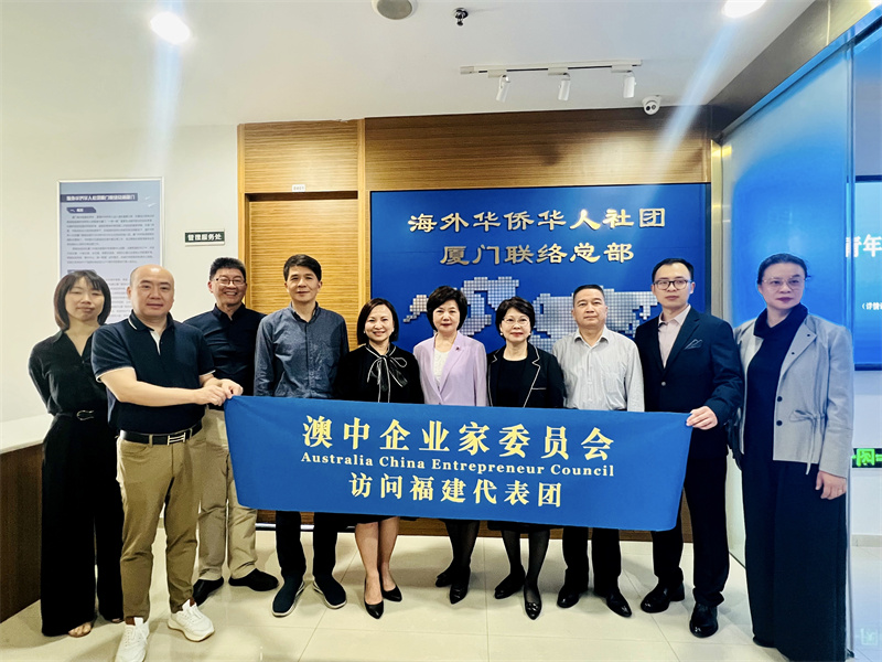 陈壬说,“中澳建交50年来,中澳两国友好关系和经贸合作快速发展,既给双方人民带来实实在在的利益,也有力促进了彼此经济稳定增长。希望今后在中澳双方共同努力下,中澳两国恢复各领域交流,走上了改善发展关系的正确道路。”目前,中国是澳大利亚第一大贸易伙伴、第一大出口目的地和第一大进口来源地;中国也是新州第一大贸易伙伴、第一大进口来源地和第一大服务贸易出口市场。澳中企业家委员会代表团成员们表示,我们都是中国繁荣发展、中澳关系健康发展的见证者、参与者和受益者,将继续秉承恋祖爱乡的优良传统,以侨架桥,促进中澳交流,助推福建家乡发展。此次代表团成员在访问中就福茶出口、福品采购、预制菜出口、宠物保健品进口、保健品来料加工等方面的与有关部门进行了深入探讨。