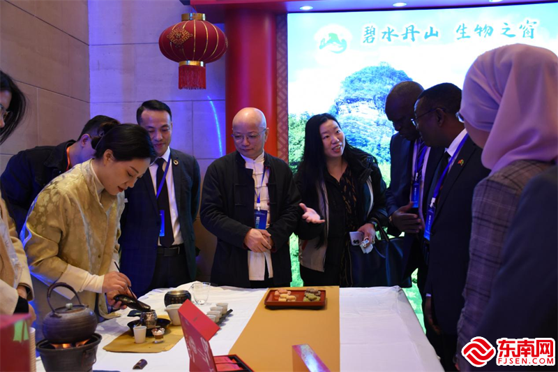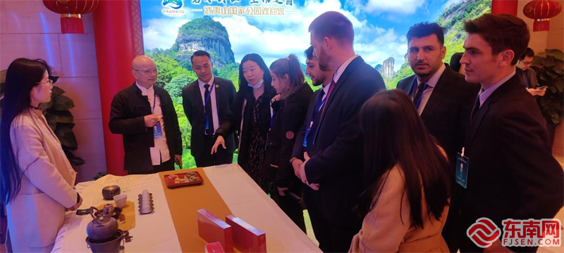国际友人、网红青年在红天下茶业展位上了解并品鉴福茶