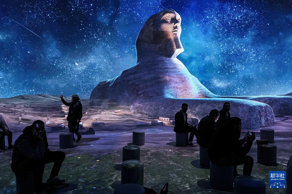 11月20日,人们在埃及吉萨的大埃及博物馆参观图坦卡蒙沉浸式展览。