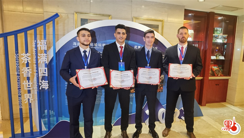11月15日,2023年(第四届)海丝茶文化论坛在福建南平武夷山市举行。有八位海外青年网络达人成为福建“福茶”海外传播官。(点新闻记者何德花摄)