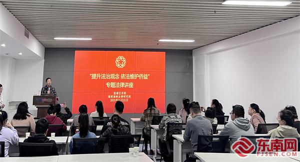 东南网11月23日讯 为进一步服务好侨企,切实提高广大侨企防范金融法律风险能力,11月21日,福州市鼓楼区侨联在福建海峡法律研究院举办“提升法治观念 依法维护侨益”专题法律讲座,20余位侨企代表参加活动。讲座由鼓楼区侨联副主席林滨州主持。