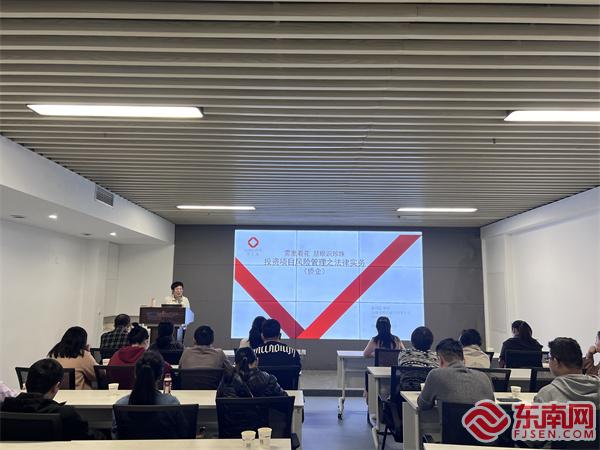 福建海峡法律研究院主任高巧莲为参会企业作《雾里看花,慧眼识珍珠——投资项目风险管理之法律实务》法律讲座。她从项目风险管理概述、识别、评估、案例分享等方面进行阐述,并对与会企业负责人提出的问题进行一一解答,针对可能出现的风险环节作出解析和提醒。