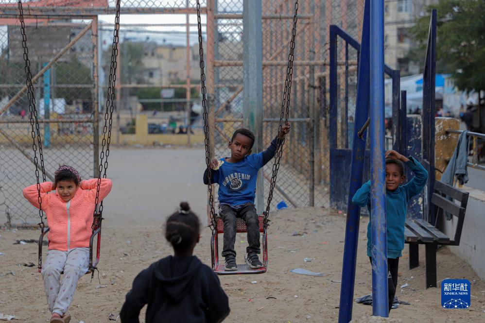 11月27日,孩子们在加沙地带南部城市拉法一处公园玩耍。新华社发(里泽克·阿卜杜勒贾瓦德摄)