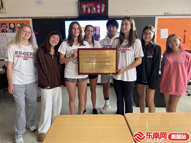 格伦瑞奇高中的摄影班和中文班的三十多位同学积极参与活动,获得组织奖。手拿奖牌的是部分今年AP中文班的同学。(张世红老师提供)