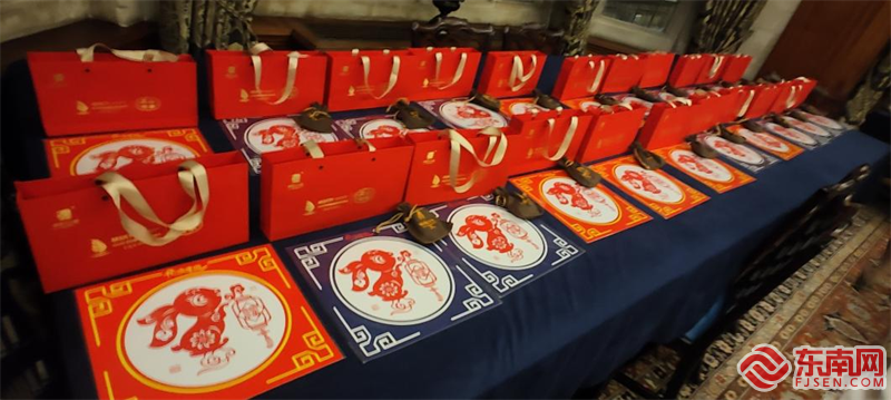下午茶活动现场展示摆放了福建剪纸和福茶