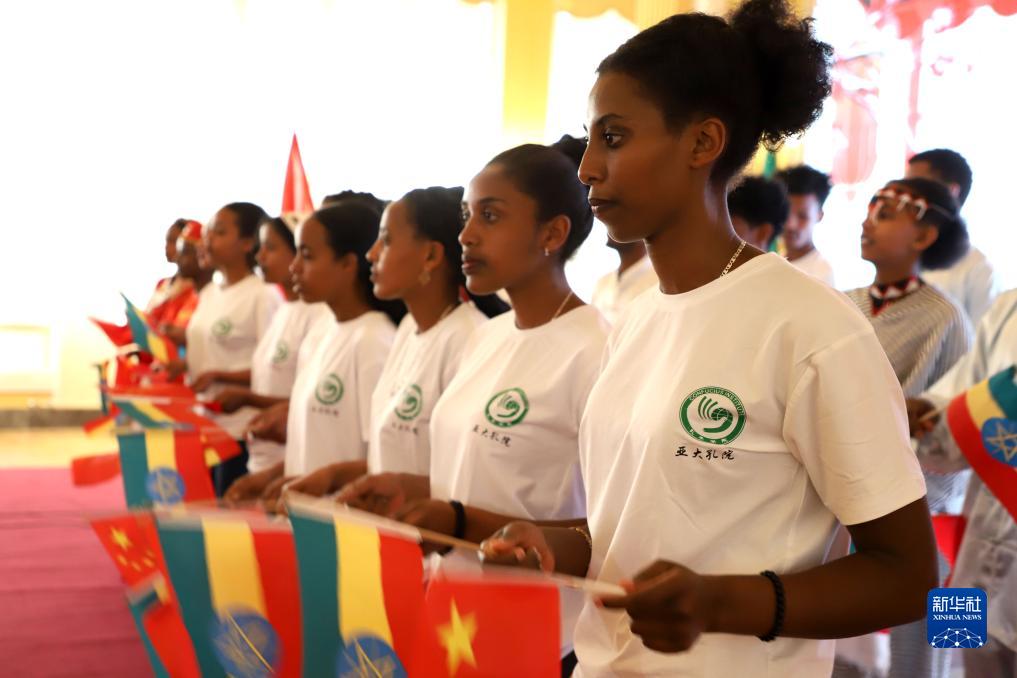 12月4日,在埃塞俄比亚首都亚的斯亚贝巴,亚的斯亚贝巴大学孔子学院学生表演节目。新华社发(迈克尔·特韦尔德摄)