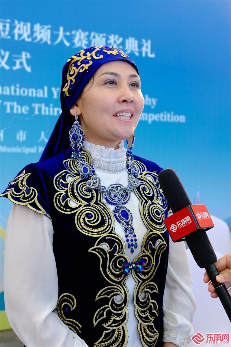 与努尔苏力坦·奴尔吉格提同行的获奖选手爱阿茹·叶里江身穿漂亮的哈萨克斯坦民族服饰来到了颁奖仪式现场,成为了现场一大亮点。她说,她是为了提升她的汉语水平才去参赛,此次来到福州,让她有更多机会和中国朋友交流、说汉语,是一次非常难得的体验。