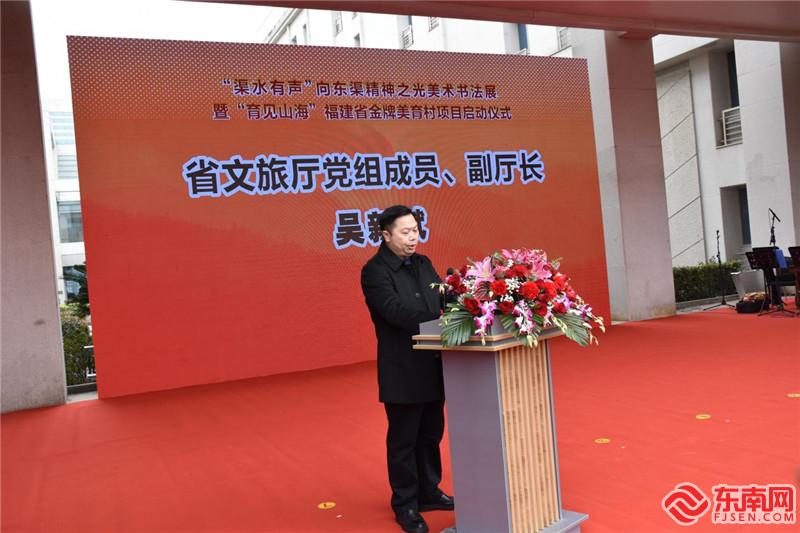 东南网12月23日讯(记者 王文青)12月23日,由福建省文化和旅游厅、漳州市人民政府共同主办“渠水有声”向东渠精神之光美术书法展暨“育见山海”福建省首批金牌美育村培育工程启动仪式在福建省美术馆隆重举行。