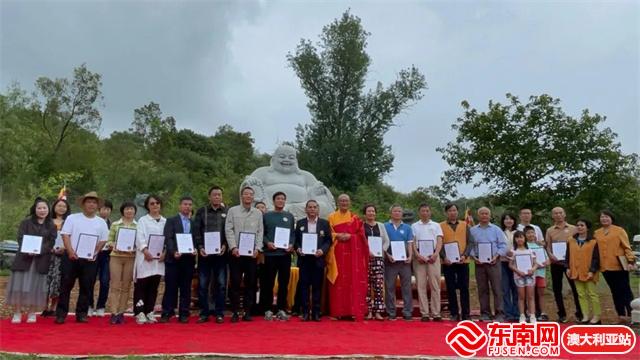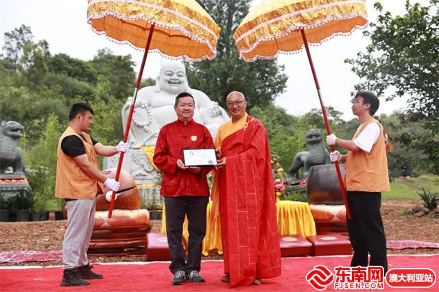 般若法师还为澳大利亚莆田商会会长戴秉凡颁发了“妈祖文化园授命书”。