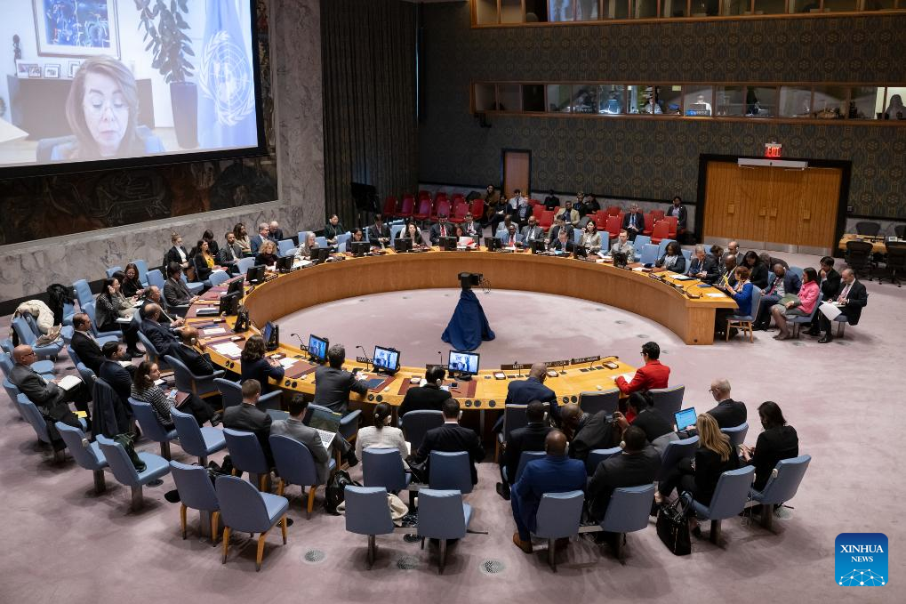 The Security Council holds a meeting on the situation in Haiti at the UN Headquarters in New York, on Jan. 25, 2024. The top UN envoy for Haiti on Thursday called on all stakeholders in the country to prepare for the deployment of the UN-authorized, Kenyan-led multinational police force. (Manuel Elias/UN Photo/Handout via Xinhua)