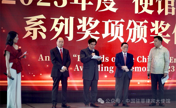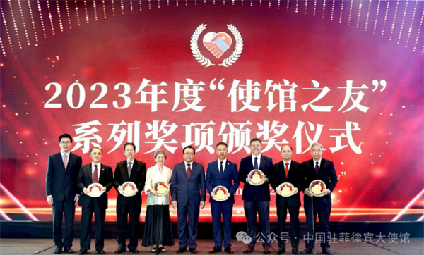 2月1日,中国驻菲律宾使馆举办2023年度“使馆之友”系列奖项颁奖仪式。中国驻菲律宾大使黄溪连、获奖嘉宾、菲华有关社团代表及使馆部分外交官出席。
