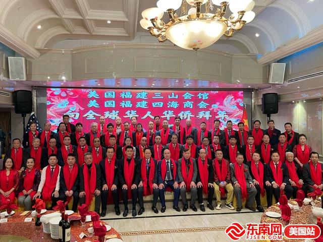 当晚,福建三山会馆和福建四海商会相继举行“新年团拜”仪式,分别向全球华侨华人拜年,恭祝海内外同胞新年快乐、阖家平安、事业兴旺、如龙腾飞!与会嘉宾个个肩披红授带,手牵大红福,一起迎接新春的到来!