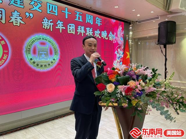 纽约总领事馆领侨处主任潘焱在致辞中表示,每次参加闽籍侨团活动都倍感亲切,就像回到祖国、回到家乡一样。他指出只有中美关系好,侨胞在美国才能过得舒适舒坦。希望大家多多支持祖(籍)国发展建设,多多支持中美关系行稳致远。最后,他向所有侨胞致以节日的问候和新春的祝福!