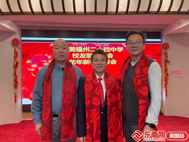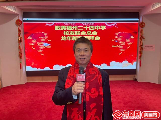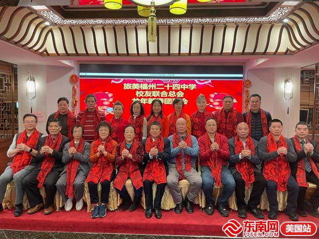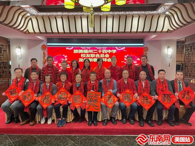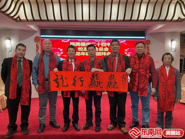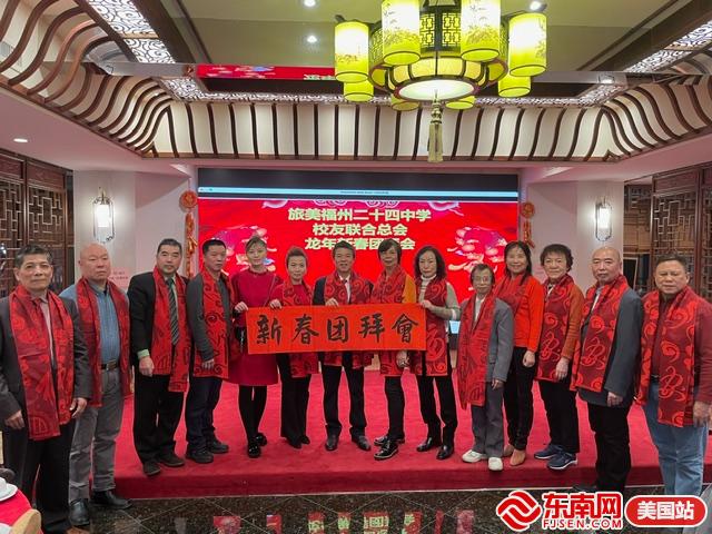 东南网美国2月7日讯(特约记者 纽约墨人)2月5日,旅美福州二十四中学校友联合总会在纽约麒麟金阁大酒楼举办龙年新春团拜会。参加当天活动的嘉宾有旅美福州二十四中学校友联合总会会长杨友毅、创会名誉会长任旭明、总顾问林天欢、老师任进、秘书长郑宝通,副秘书任怡丹、第一常务副会长张恭信、理事长陈占飞、副理事长陈增炎、理事任奇等。
