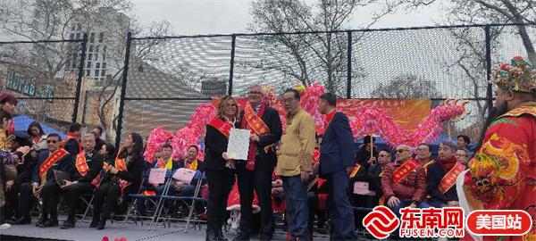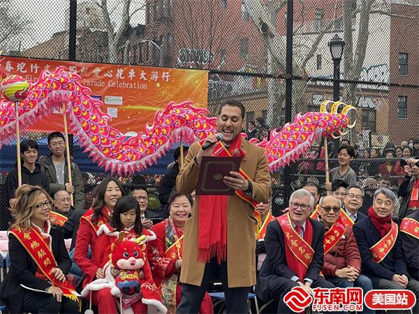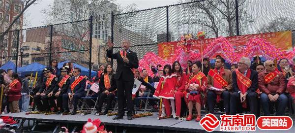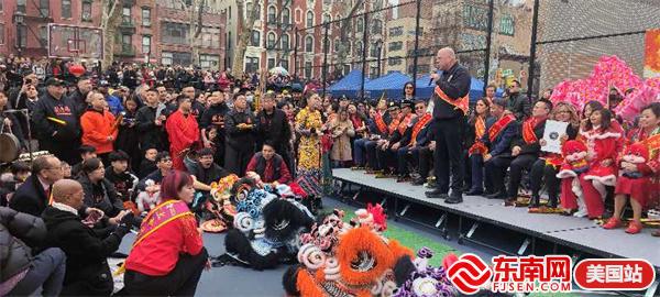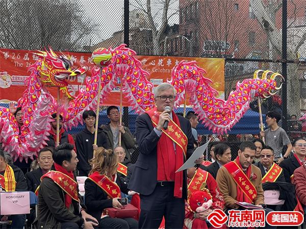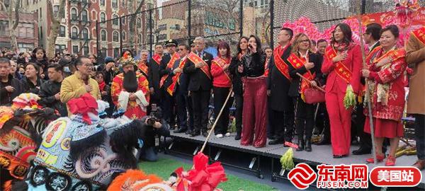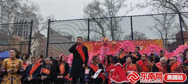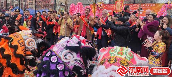 东南网美国2月11日讯(特约记者 纽约墨人)2024年,鱼跃龙门,“龙”重登场!由美国繁荣华埠总会主办的第26届纽约庆祝新春炮竹文化节大年初一(2月10日)在华埠罗斯福公园举行,得到了州及市政府的大力支持,吸引数十万人参与,热闹非凡,现场有醒狮表演、中国传统舞蹈及乐队表演,还点燃数十万只鞭炮,以除旧迎新,迎接龙年的到来,向美国社会展示了中华民族传统节日和美国华人的精神面貌和凝聚力。参加当天活动有中国驻纽约总领馆副总领事吴晓明、曼哈顿区区长李文、纽约州众议员李荣恩、纽约市议员马泰、繁华华埠总会行政总监田士锐、美国福建同乡会主席陈恒等。