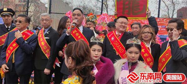 活动现场奏唱中美两国国歌。繁荣华埠总会行政总监田士锐介绍,今年龙年的大游行特邀中国电子公司专门设计了特色金龙,引领美东地区多个龙狮团共同起舞,此外,邀请到美国本地团体、公部门和民选官员团队组织自己的花车及队伍参与游行,此前一直较为低调的部分传统侨团也会首次派团参加。很高兴看到游行活动吸引到年轻世代的华人以及美国主流社会的参与和关注,这样的活动将更好地展示华人社区的力量和团结。