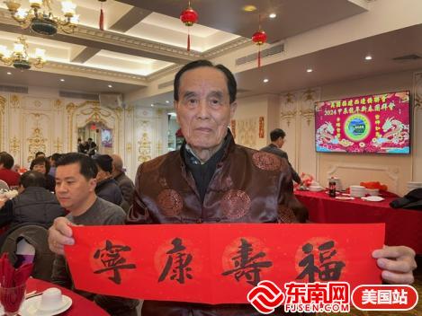 美国中国书法家协会会长李兆银题写“福”字,给老人们沾沾福气。参加当晚活动的还有美国福建西边侨联名誉总顾问王孔修,荣誉主席郑仁胜、李培殿、王孟忠、陈善桐、陈善柱,青年企业家团队成员王贵阳、郑新等,以及闽籍侨领林学文等。