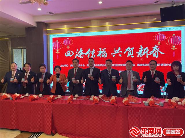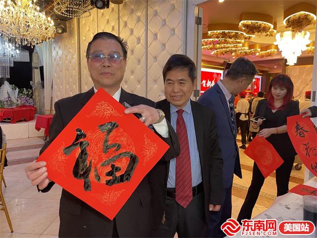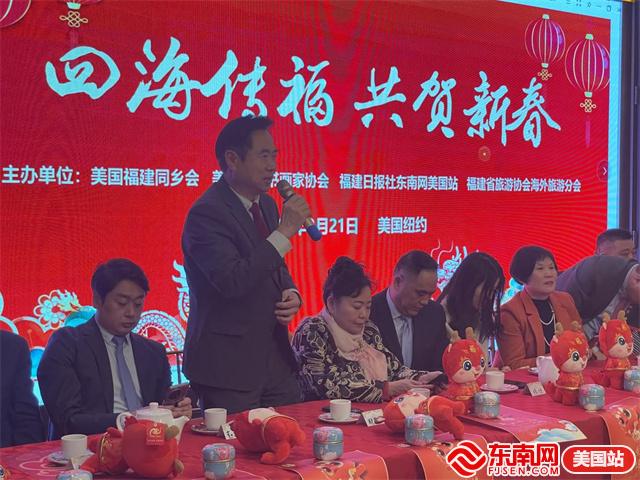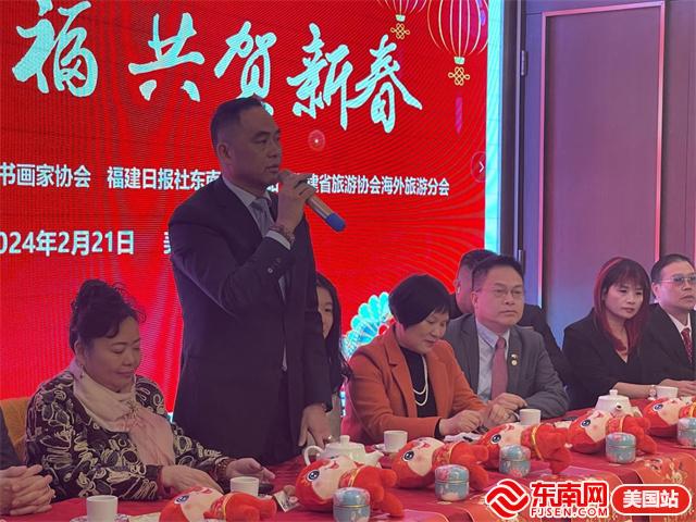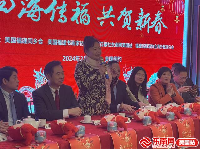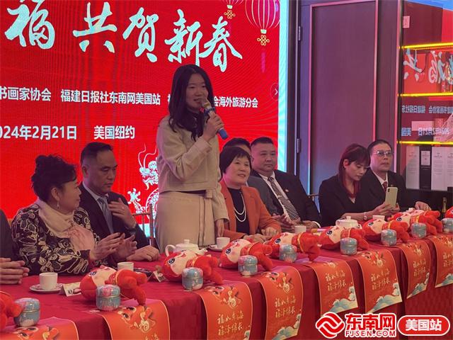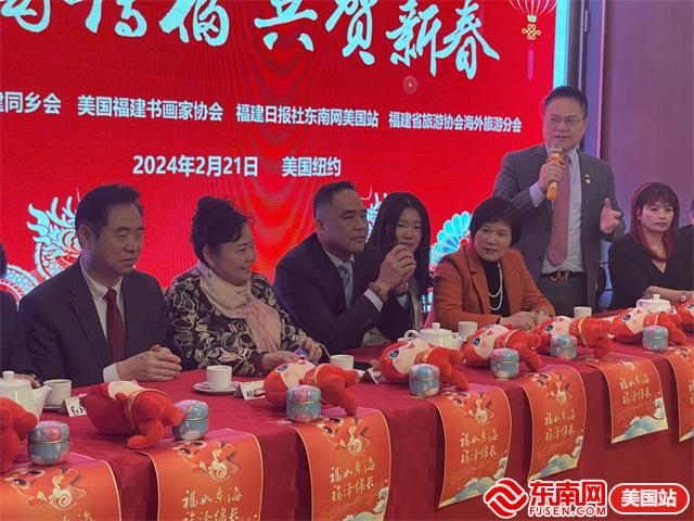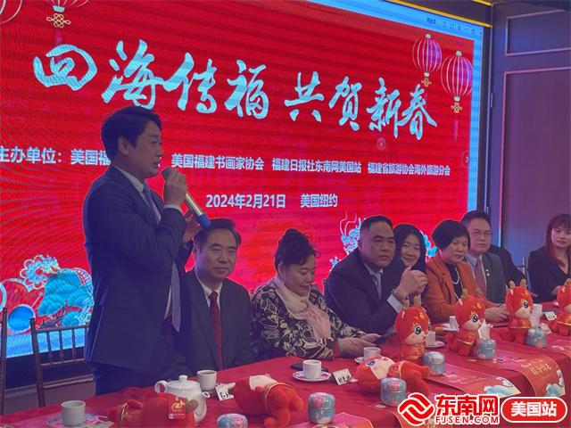 东南网美国2月22日讯(特约记者 白水 纽约墨人 文/图)当地时间2月21日,为庆祝中国农历甲辰龙年,增进海内外社会各界对福建文化和旅游的认识,由美国福建同乡会、美国福建书画家协会、福建日报社东南网美国站、福建省旅游协会海外旅游分会共同主办的“四海传福·共贺新春”活动在纽约法拉盛君豪酒店举办。