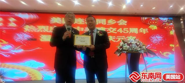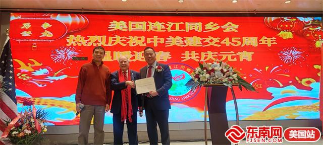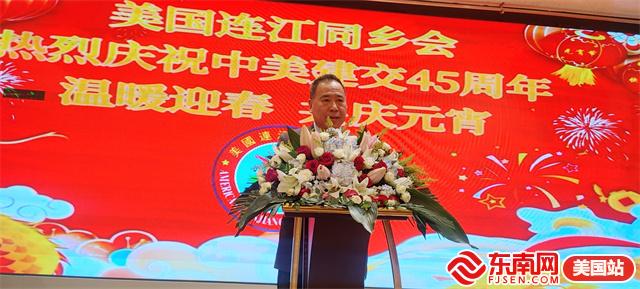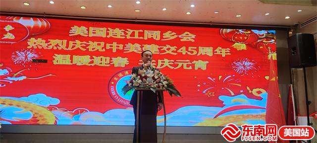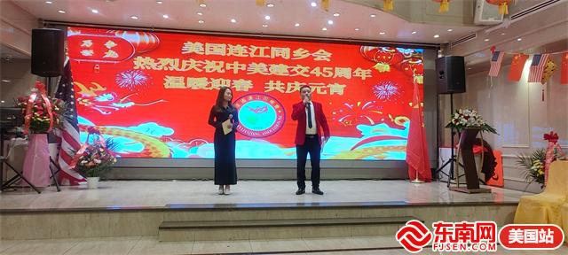 东南网美国2月25日讯(特约通讯员 郑快乐)2月23日,美国连江同乡会在纽约布鲁克林海悦大酒楼成功举办庆祝中美建交45周年暨“温暖迎春 共庆元宵”的晚会。
