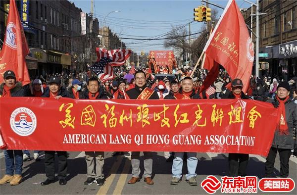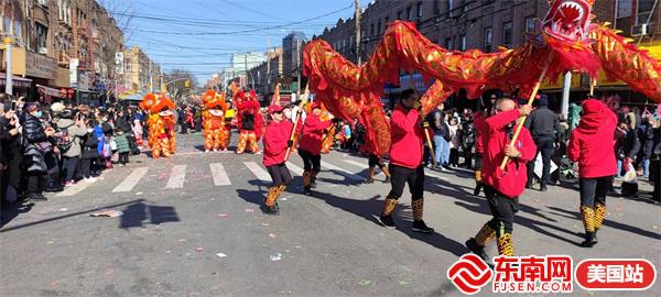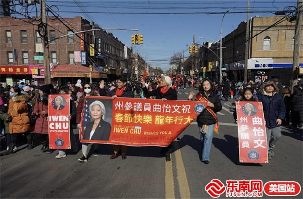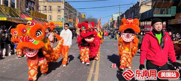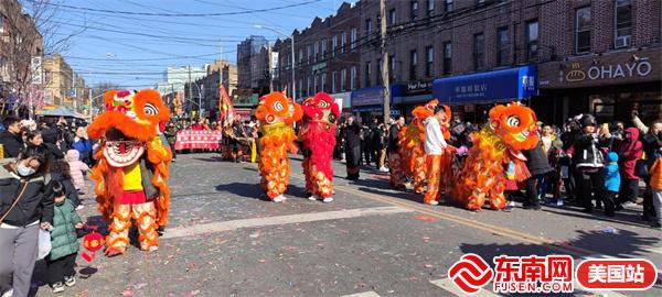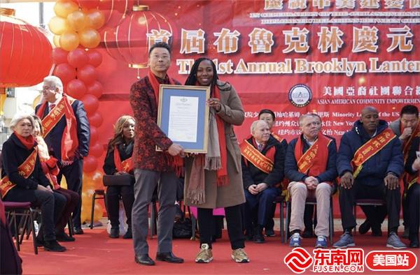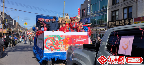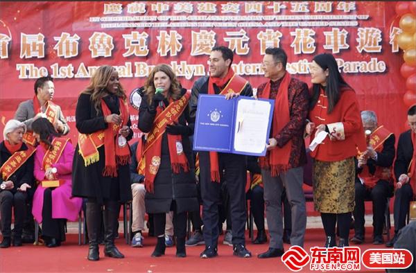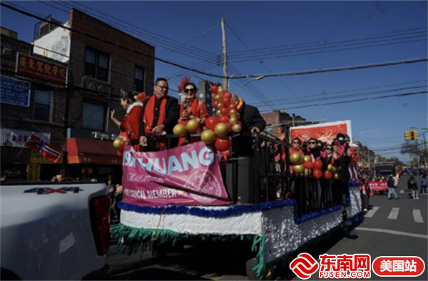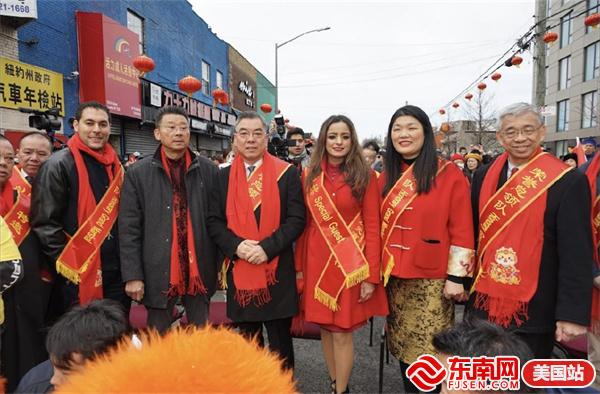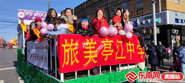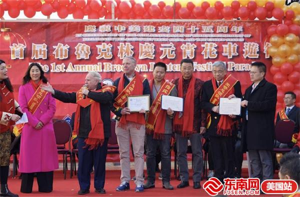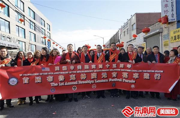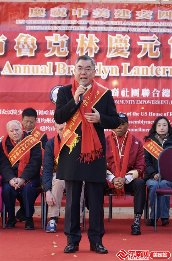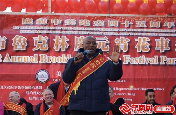 东南网美国2月26日讯(特约记者 白水 特约通讯员 郑快乐 文/图)当地时间2月24日,由美国亚裔社团联合总会主办,美国联邦众议院少数党领袖杰弗里斯办公室、纽约市议员庄文怡办公室、纽约州众议员郑永佳办公室支持,美华总商会、美国香港总商会、布碌仑亚裔民安队、纽约华人联合会、亚裔社区中心联办的首届布鲁克林庆元宵花车游行暨庆祝中美建交45周年活动在纽约布鲁克林隆重举行。中国驻纽约总领事黄屏、纽约市长亚当斯、纽约州副州长德尔加多、布碌仑区长雷诺索、布碌仑地区检察官蒋沙乐、州参议员曲怡文、州众议会少数党领袖巴克莱、州众议员寇顿、李荣恩、郑永佳、拉伊库马尔、市议员庄文怡、马泰、梅宁、路易斯、奥赛等数十名美中政要、社区各界人士以及上万民众同贺新春闹元宵,共庆这个万家团圆与欢乐的节日。