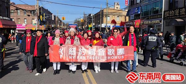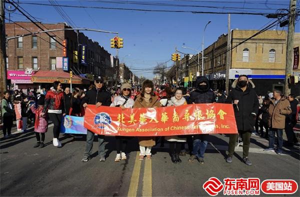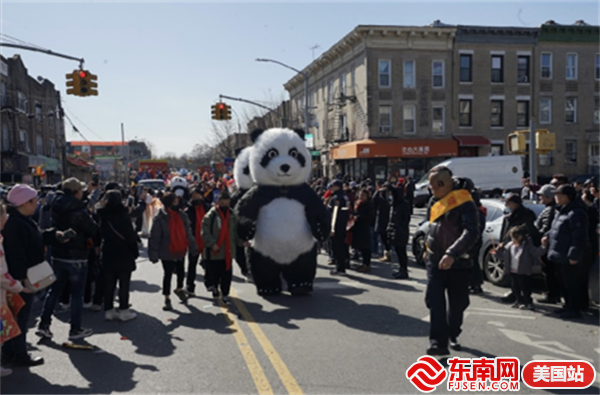当天主办方在位于61街的主舞台上表演精彩的文艺节目及开幕仪式,锣鼓喧天、舞龙醒狮腾飞跳跃,呈现一派生机勃勃、欣欣向荣的热闹景象。随后,在四辆警车开道下,在五头舞狮和两条飞龙的带领下,游行队伍从七大道交62街开始,沿着七大道一路向北,道路两旁挤满了围观的民众,纷纷用手机拍下这难忘的瞬间。