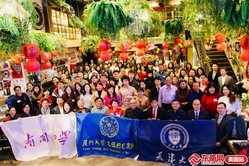 东南网美国2月27日讯(特约记者 刘伟 特约通讯员 林诗韵)龙年的正月十五元宵佳节,大纽约地区的厦门大学校友会联合南开大学校友会和天津大学校友会,举办了一场别开生面的春节联欢晚会。中国驻纽约总领事馆教育参赞余有根、领事耿俊伟、杨小宇,林登市市长德里克·阿姆斯特德(Derek Armstead)及夫人,三所主办高校校友会会长吴娇、张瑞玮、颜为民与校友,以及兄弟高校人大校友会会长吴亚锋、山大校友会会长马云霞、大工校友会会长侯彦彦、武大校友会理事长胡智勇、北大校友会理事长黄河、广外校友会名誉会长阎卫刚、新泽西福建同乡会主席李世群等150多人参加了联欢活动。