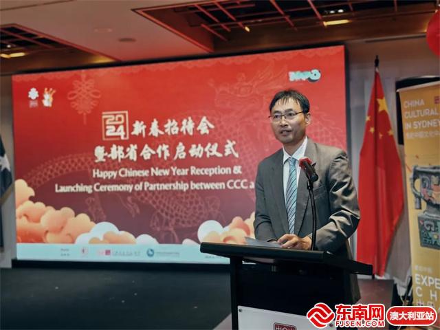 东南网澳大利亚2月28日讯(特约记者 一禾)当地时间2月25日,2024年悉尼中国文化中心新春招待会暨中心与西安市部省合作启动仪式在悉尼中国文化中心成功举办。中国驻澳大利亚大使馆公使衔参赞肖夏勇、驻悉尼总领事馆文化参赞王书羽、西安市文化和旅游局副局长王晓、悉尼市副市长郭耀文(Robert Kok)、悉尼中国文化中心主任兼驻悉尼旅游办事处主任刘东、澳大利亚水彩画协会主席大卫·范·努恩等中澳嘉宾和各界人士80余人出席了活动并见证部省合作启动仪式。