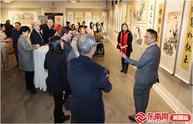 东南网美国3月10日讯(特约记者 白水 文/图)当地时间3月7日,由美洲中西艺术家协会(International Chinese Arts Society of Americas)、美国切斯特郡艺术协会 (Chester County Art Association)联合主办的《中国书画精品展》在宾州切斯特郡切期特专业艺术展厅举行。出席的嘉宾包括宾夕法尼亚州参议员克里斯汀(蒂娜)塔塔廖内(PA Senator Christine (Tina ) Tartaglione),宾州切斯特郡现任三位郡长首席郡长乔什·麦克斯韦(Josh Maxwell) 、副主席玛丽安·莫斯科维茨(Marian D. Moskowitz)和埃里克·罗伊(Eric M. Roe )郡长, 大费城泛亚协会主席(Pan Asia Associaton of Greater Philadelphia)兼大费城亚裔美国商会(AACCGP)董事会主席纳拉西姆哈·谢诺伊(Narasimha B. Shenoy),前大费城韩美协会(Korea America association of Greater Philadelphia )协会主席莎朗·哈茨,美国宾州华人华侨联盟主席兼费城中餐馆协会主席朱枫,及黄龙清、孟红、胡惠霞、王玉明,摄影师萧燕、洪跃冰、王圣明、Steve等嘉宾及友人逾200人参加活动。现场还特别举办挥毫送“福”及艺术表演。