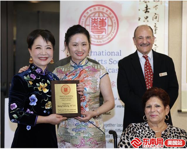 开幕式中,许蜀代表协会向艺术家宋飞鸿颁发了"杰出文化使者"奖,对其多年来促进中美文化交流和传承中国优秀文化艺术的贡献进行表彰。