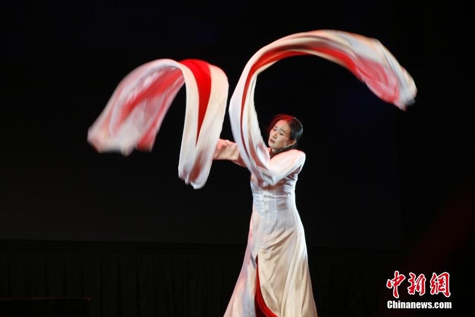 当地时间3月10日晚,中国北京舞蹈学院青年舞团在悉尼市政厅演出大厅表演作品《舞动经典》,这是他们在澳大利亚悉尼的首次亮相。图为演员表演舞蹈《青衣》。中新社记者 顾时宏 摄