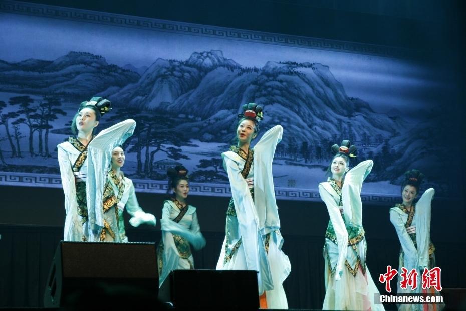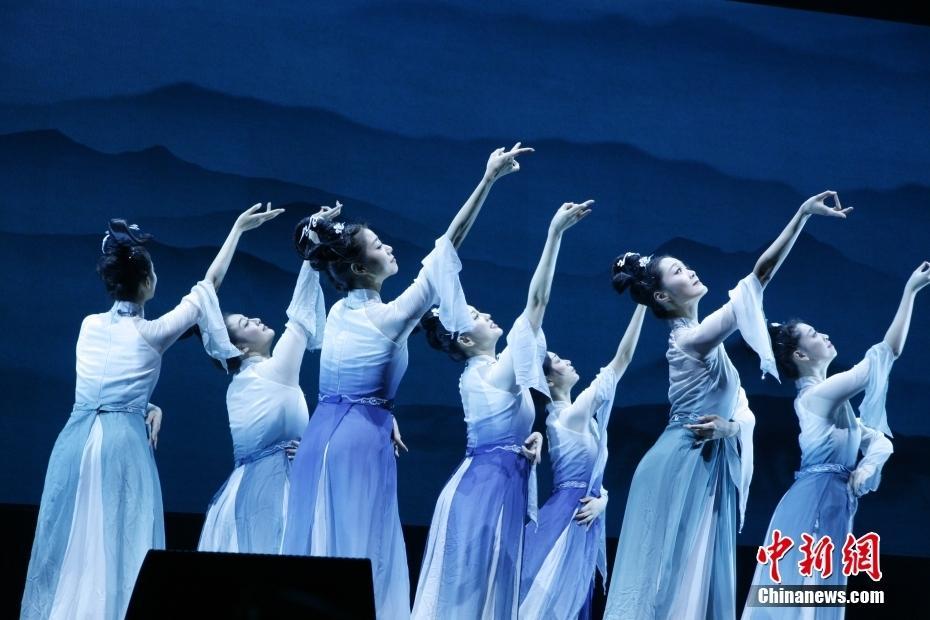 当地时间3月10日晚,中国北京舞蹈学院青年舞团在悉尼市政厅演出大厅表演作品《舞动经典》,这是他们在澳大利亚悉尼的首次亮相。图为演员表演舞蹈《青山远黛》。中新社记者 顾时宏 摄