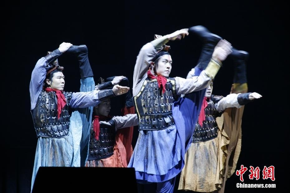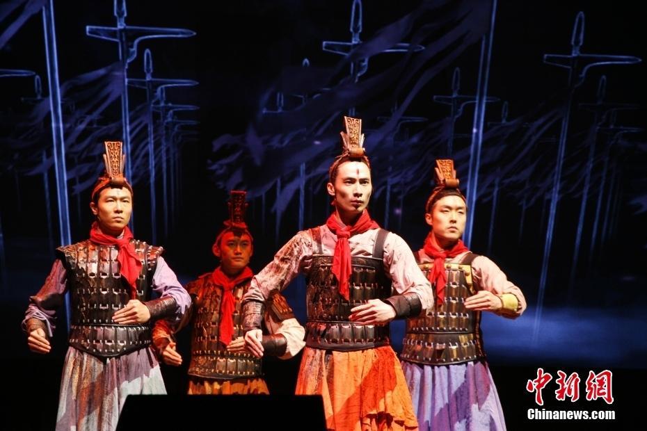 当地时间3月10日晚,中国北京舞蹈学院青年舞团在悉尼市政厅演出大厅表演作品《舞动经典》,这是他们在澳大利亚悉尼的首次亮相。图为演员表演舞蹈《秦王点兵》。中新社记者 顾时宏 摄