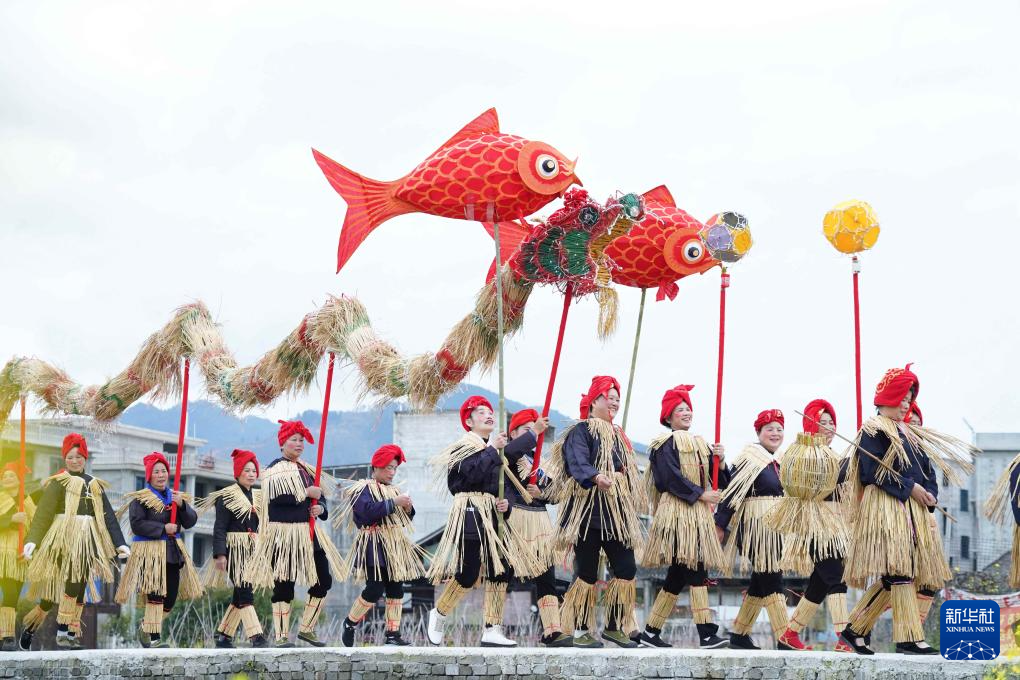 3月18日,当地群众在“萨玛节”活动中舞稻草龙。
