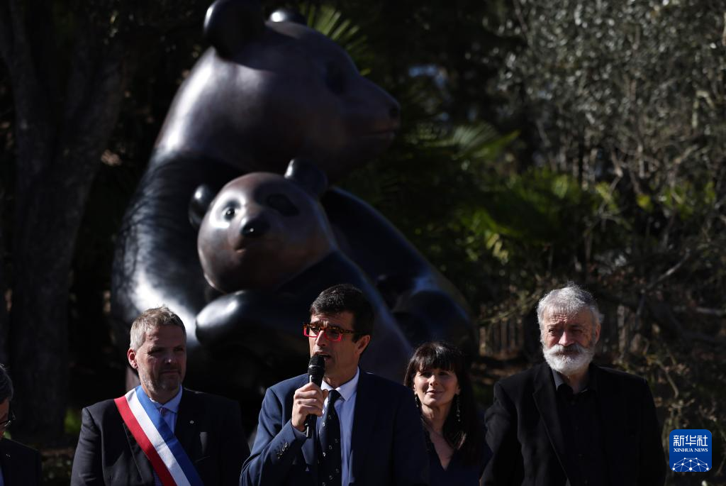 以首只在法国诞生的大熊猫“圆梦”为原型的大型铜雕22日在法国博瓦勒野生动物园揭幕。据动物园方面介绍,铜雕高2.5米,名为《“圆梦”:圆一个梦想》,这既说明了作品由来,又阐释了大熊猫“圆梦”名字的意涵。