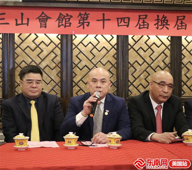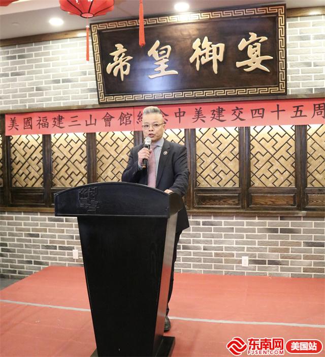 东南网3月25日讯(特约记者 白水)当地时间3月24日,美国福建三山会馆(以下简称“三山会馆”)在纽约法拉盛帝皇御宴酒楼举行第十四届换届选举新闻发布会。郑振何当选第十四届三山会馆主席、陈爱民当选第十四届三山会馆总理。同时,三山会馆还在此举办纪念中美建交45周年庆典晚会,社区侨界人士及该会成员约120人参加。会议由福建三山会馆常务副主席王永应主持。