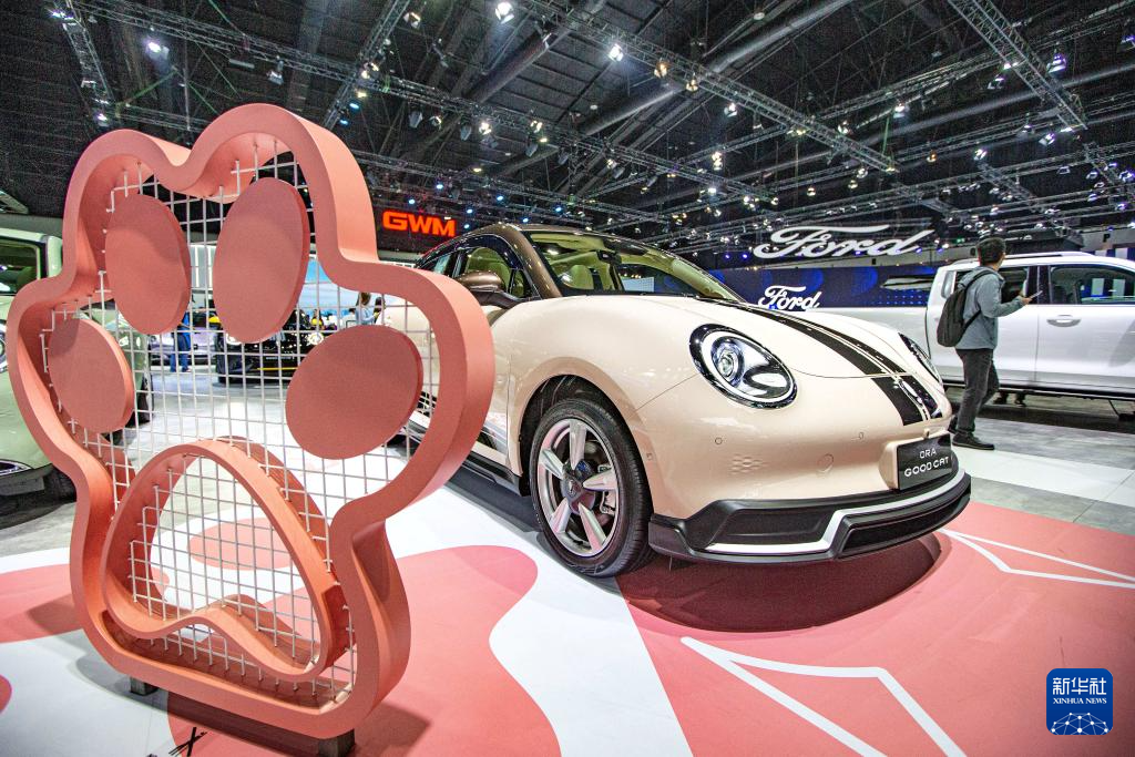 这是3月27日在泰国曼谷国际车展上拍摄的欧拉好猫汽车。