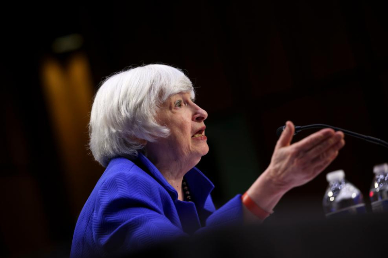 2021年9月28日,美国财政部长耶伦在华盛顿出席国会参议院银行、住房和城市事务委员会听证会。新华社发