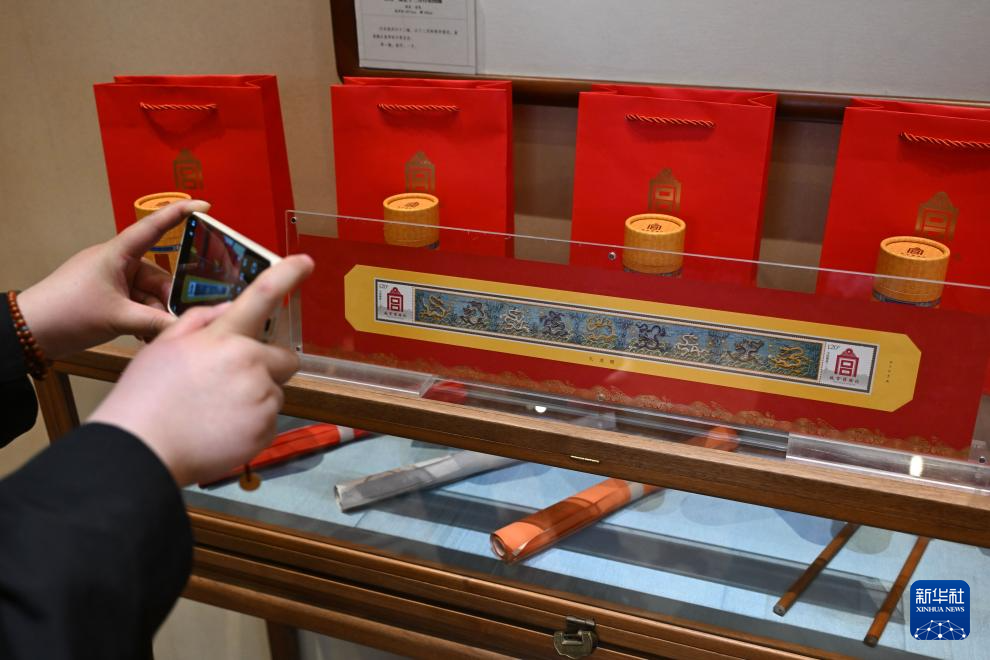 当日,由故宫博物院与中国邮政集团有限公司主办的“‘宫’邮万里 四季安康——甲辰系列主题邮品”发布会在北京故宫博物院举行。本次发布会,故宫邮局推出《四季故宫》藏书票、《甲辰太和》《九龙壁》个性化邮票、《龙抬头》《龙腾紫禁》邮册等多款甲辰系列主题邮品,在邮票方寸世界中呈现故宫四时美景与院藏珍宝。