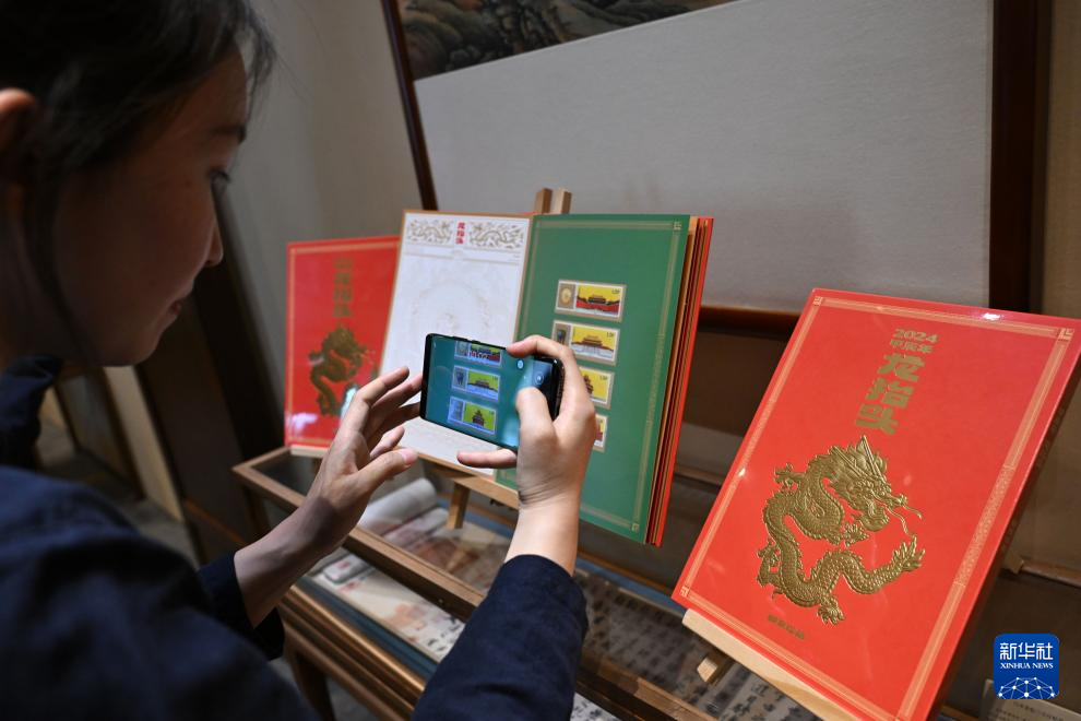 4月7日,记者在发布会上拍摄《龙抬头》邮册。