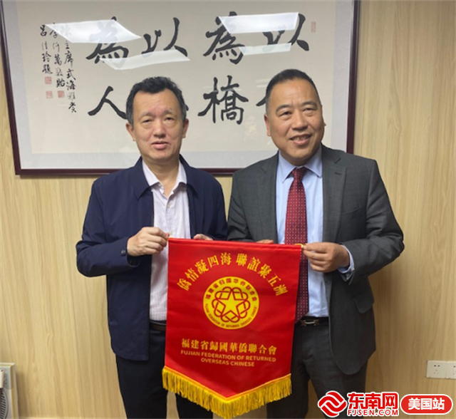 陈式海代表省侨联赠予美国连江同乡会表彰锦旗